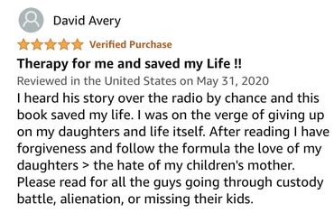 3. Supportive Resources - I quickly discovered I could not survive the ordeal of child custody court without additional resources and support. For me, those resources and support materialized in the form of books, friends and family, outside fatherhood support groups—-and yes, individual therapy. Identifying these resources (family and friends excluded) could prove challenging. I have made connections with and personally vetted several fatherhood support groups where this information can be accessed. I am prepared to help you identify what resources and support best suit your particular child custody experiences and help you access them.